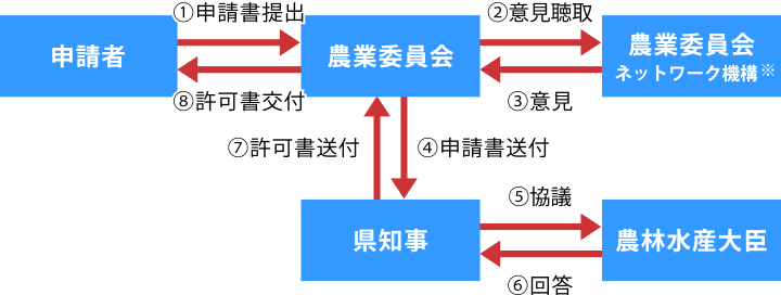 転用面積が30a(3000平方メートル)を超える場合,その他農業委員会が必要と認める場合(第1種農地の場合など)は,農業委員会ネットワーク機構(熊本県農業会議)の意見聴取が必要です。