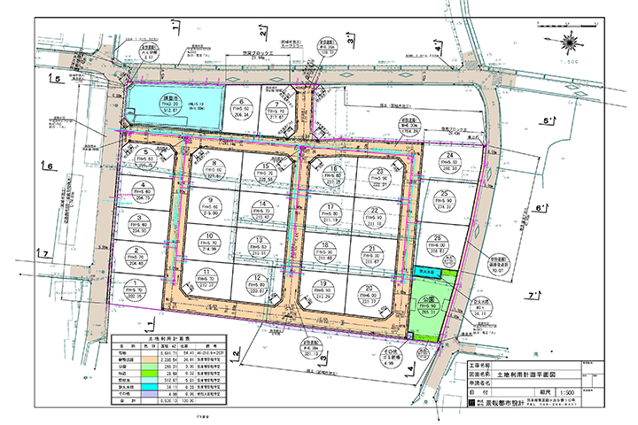 弊社は、都市計画法に基づく開発許可申請を柱とし、土木・設計コンサルタント、測量業を通して多くの分譲住宅用地、事業所用地を手掛け「街づくり」を行っています。